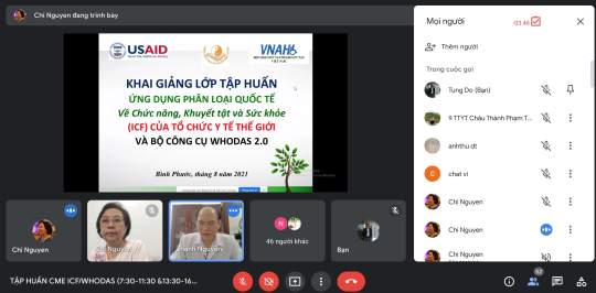 I - The Disability Rights Enforcement, Coordination, and Therapies Project (implemented by VNAH) has managed to continue capacity building for local rehabilitation workers amid COVID-19 restrictions. During the last 2 weeks of August 2021, DIRECT in collaboration with GVN health partners organized two online training courses for 83 rehabilitation practitioners in Tay Ninh and Binh Phuoc provinces. The training - each lasted for two days, comprising theory and practice sessions - guided local health workers on how to use the new rehabilitation record templates and tools, which was developed with DIRECT’s technical assistance and enacted recently by MOH for nationwide use. The new templates provided standardized tools for intake and discharge assessments and outcome measurement in rehabilitation services. The training also included the WHO’s International Classification of Functioning, Disability, and Health (ICF), and Disability Assessment Schedule (WHODAS). Although fighting COVID has been a highest priority of our local partners, the training was highly appreciated, with 85%-90% participants thought it was good and appropriate. So what? USAID’s activity helps develop capacity of local rehabilitation service providers, contributing to improving service outcomes and quality of life for persons with disabilities in the USAID priority provinces.